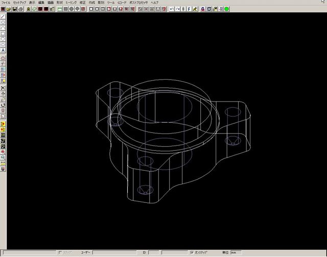 | フリーソフトのCAMソフト。Gコード・NCデータ、DXFの入出力も可能です 表示は3Dの様に表示されていますが、2D作図は可能ですが3Dでモデリングが出来るソフトではありません |